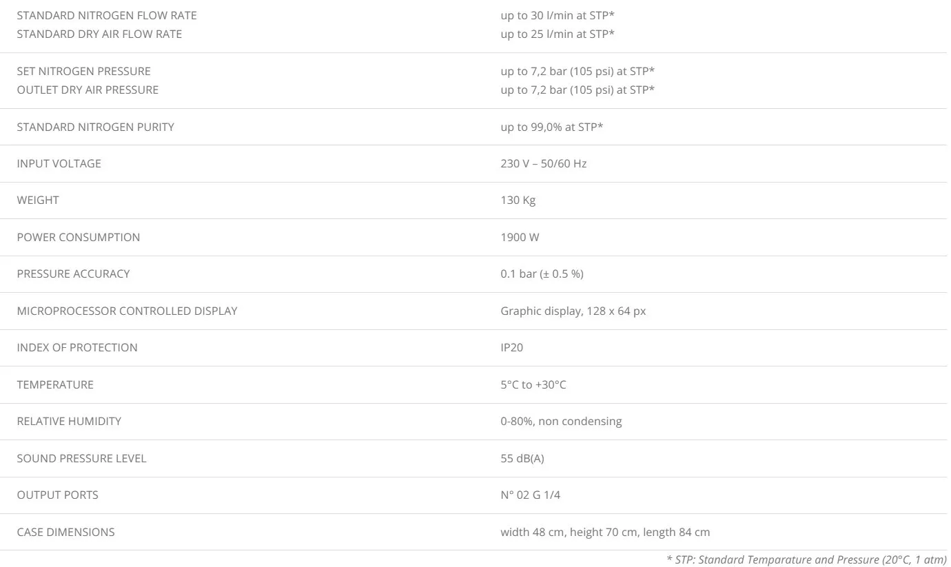 Generator azotu ZEFIRO QS został zaprojektowany specjalnie, aby dostarczać azot i suche powietrze dla systemów chromatograficznych. Generator azotu wykorzystuje technologię adsorpcji zmiennociśnieniowej (PSA) do produkcji azotu. System używa węglowego sita molekularnego (CMS), które wybiórczo adsorbuje tlen i parę wodną w wysokim ciśnieniu, jednocześnie przepuszczając azot. Dodatkowo, urządzenie dostarcza oczyszczonego, osuszonego powietrza.