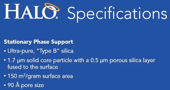 Najbardziej popularna kolumna C18 nie jest kolumną w uniwersalną. Z tego powodu AMT HALO oferują szeroki wybór faz stacjonarnych wykonanych w technologii powierzchniowo porowatej krzemionki: