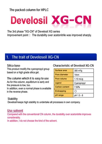 Kolumny Develosil japońskiej firmy Nomura o ustalonej renomie wśrod osób zajmujących się chromatografią cieczową. Liczne aplikacje środowiskowe i farmaceutyczne.